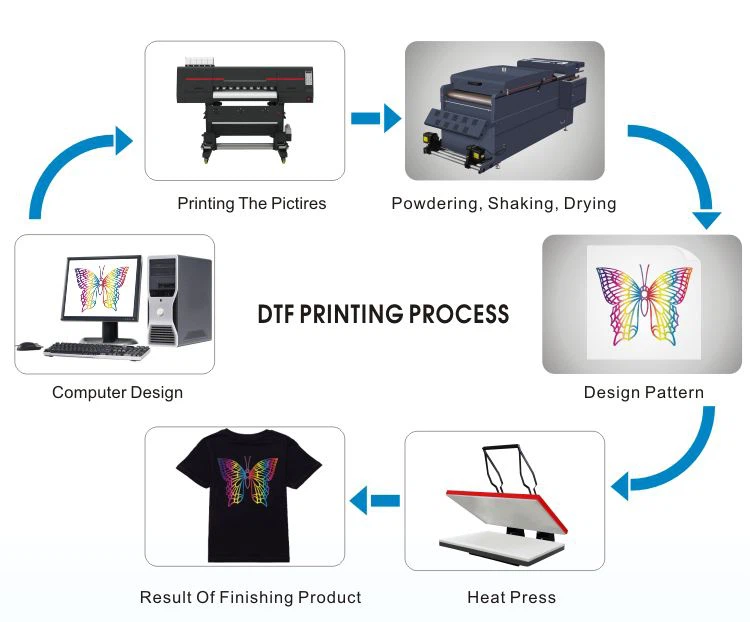 - Image Preparation: A digital design is prepared and sent to the DTF printer.